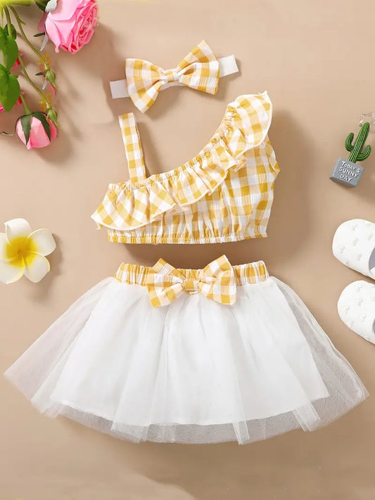 Infant 2 Pcs. Cropped Plaid Tutu Skirt Set